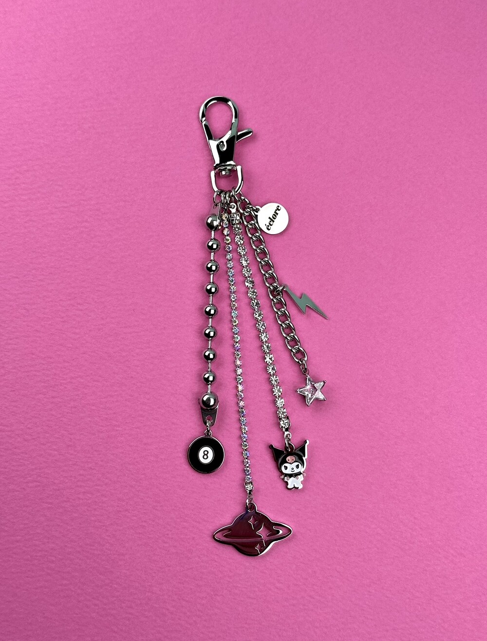 KUROMI Keyring은 써지컬 스틸로 제작되었습니다. 써지컬 스틸은 강한 내구성과 고급스러운 질감과 고유의 광택이 오래도록 유지되는것이 장점입니다.