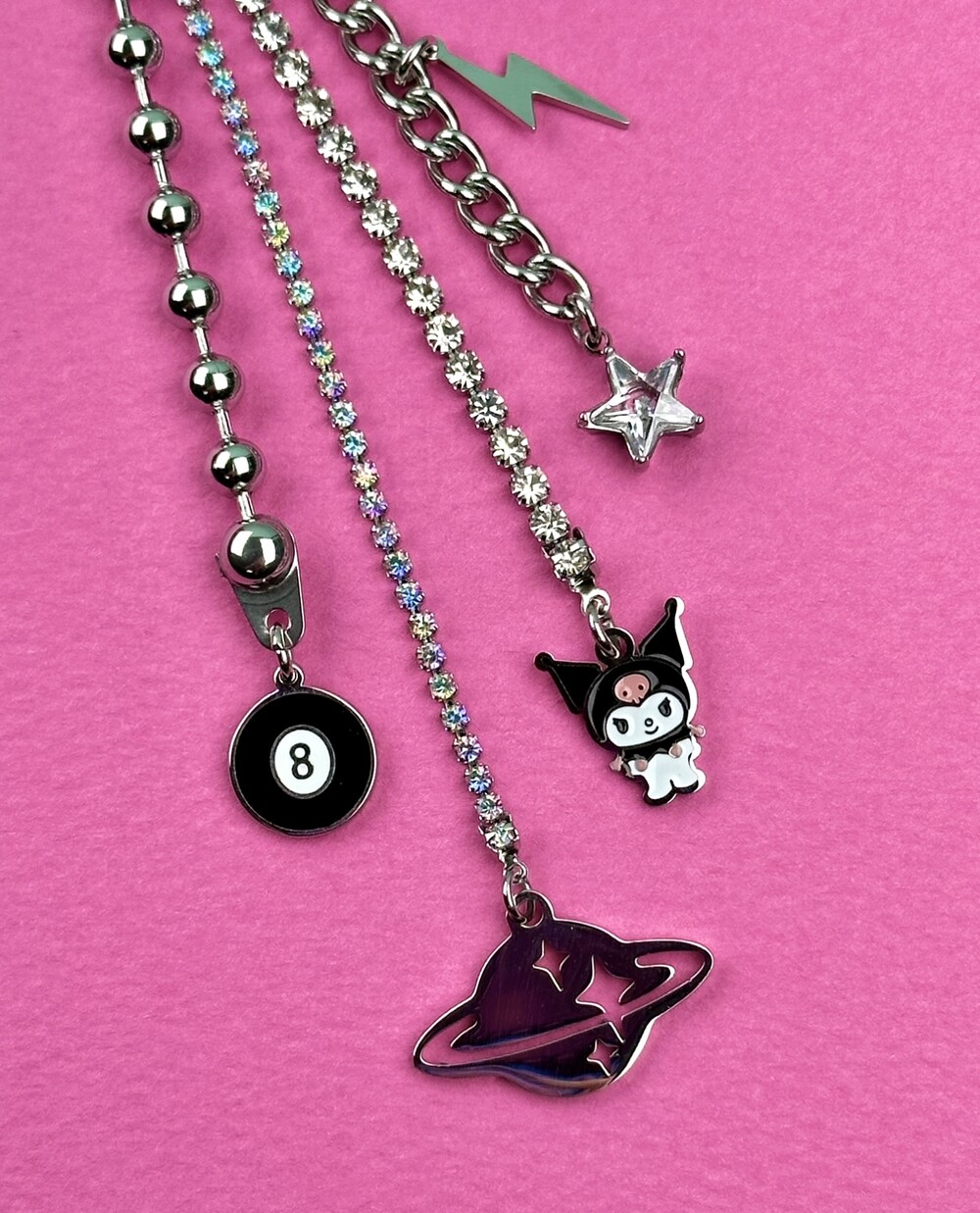 귀여운 키티와 블링블링한 체인들이 포인트인 제품입니다. 키링으로도 사용하시지만 가방이나 바지에 포인트 아이템으로 달아주세요.