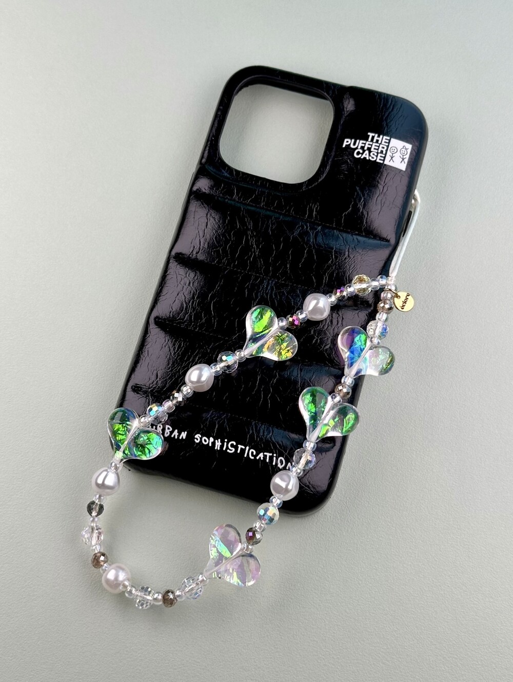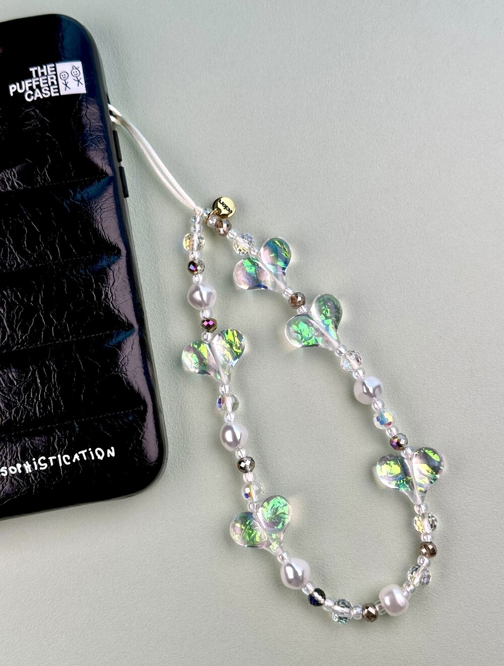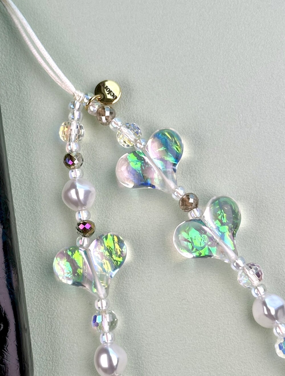 각도에 따라 오묘하게 변하는 하트가 오로라같은 느낌을 주는 폰스트랩입니다. 특히 햇볕을 받으면 반짝반짝 ✨ 실물로 봤을 때 훨씬 더 예쁜 제품입니다.