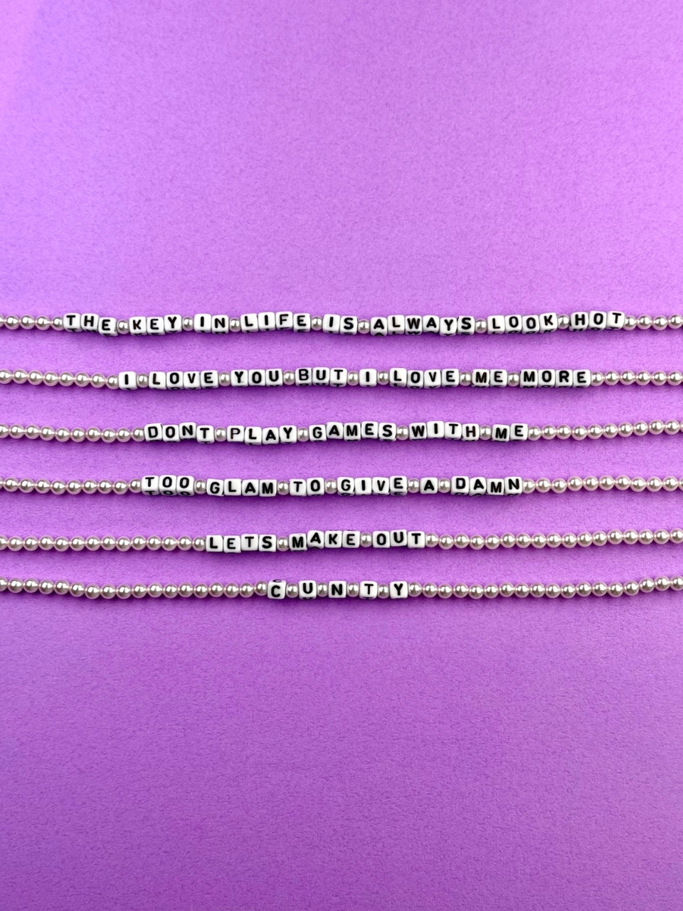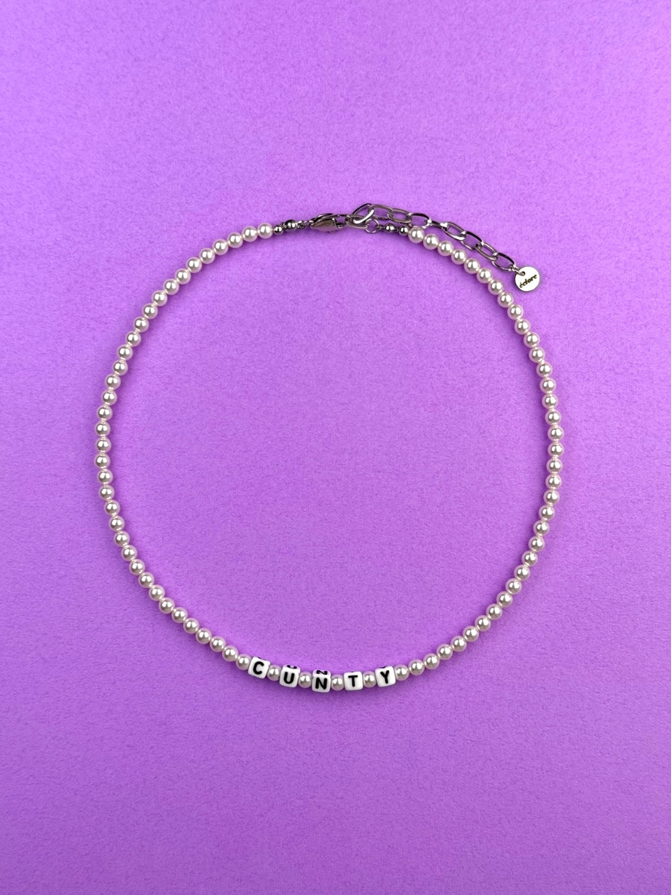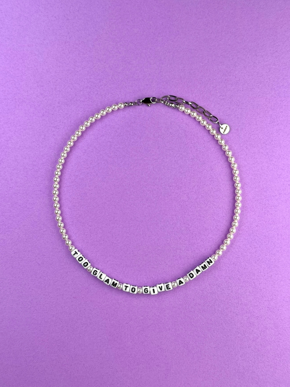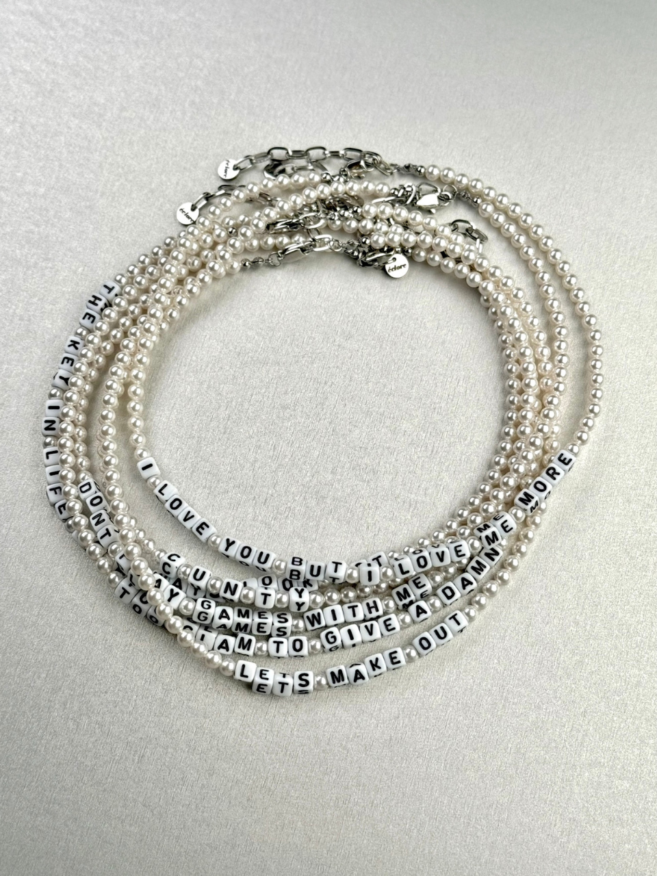 사진의 예시처럼 짦은 단어 혹은 평소에 좋아하는 문장까지 본인만의 색깔을 담을 수 있는 진주 목걸이 입니다.