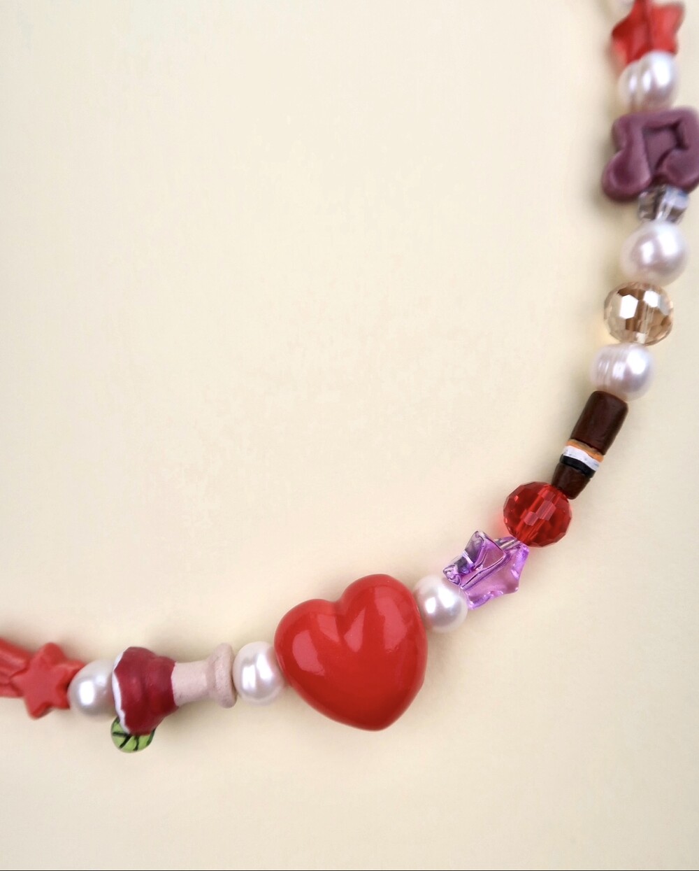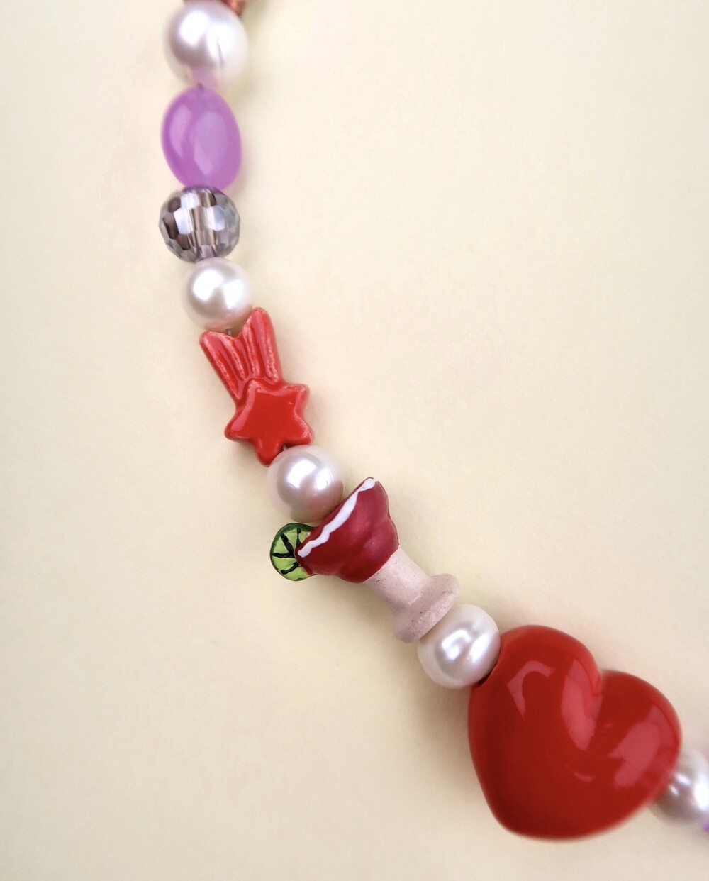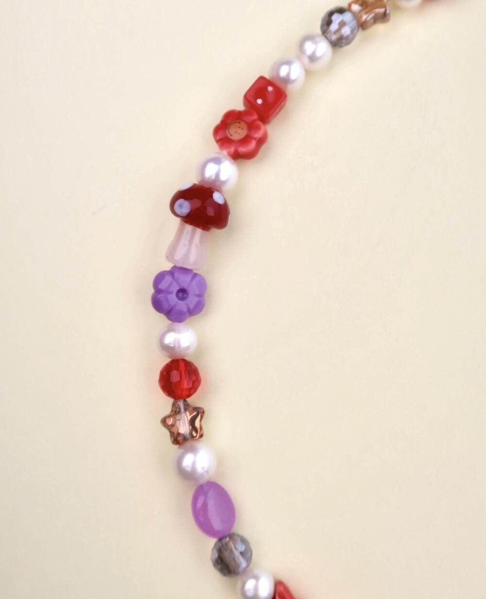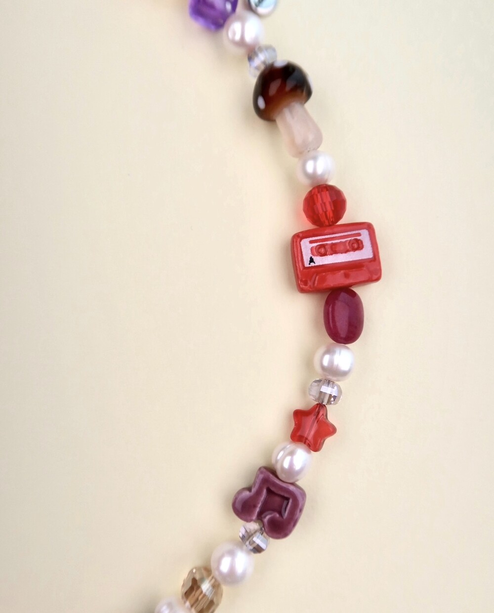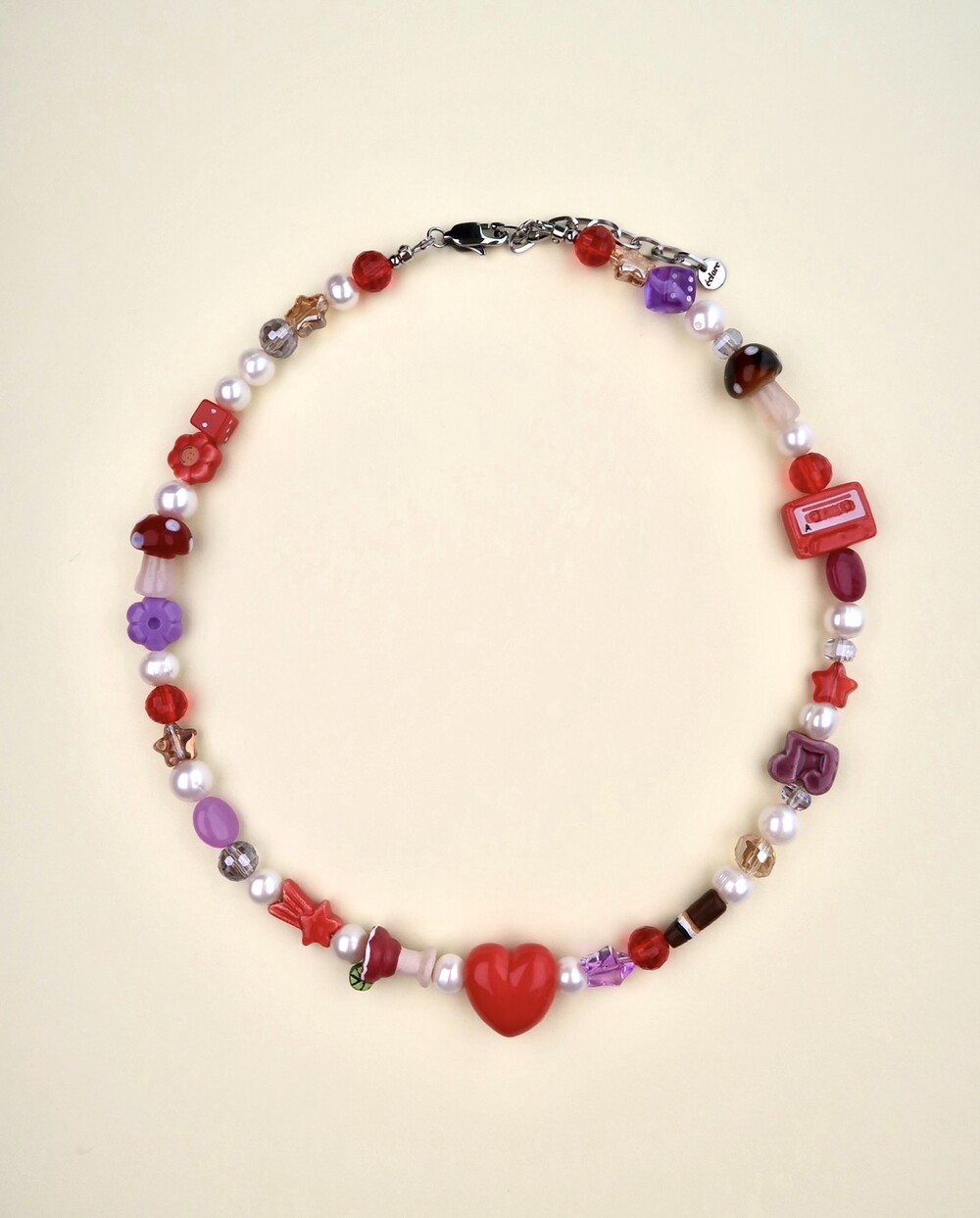Materials: Fresh Water Pearls, Peruvian beads, Crystal beads, Mother of Pearls, Glass beads, Resin beads, Gemstones, Surgical steel chains and claps.