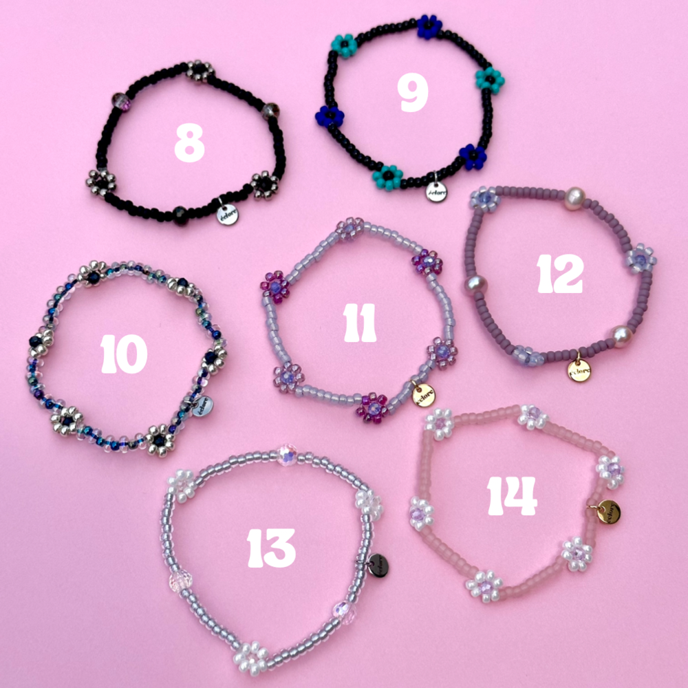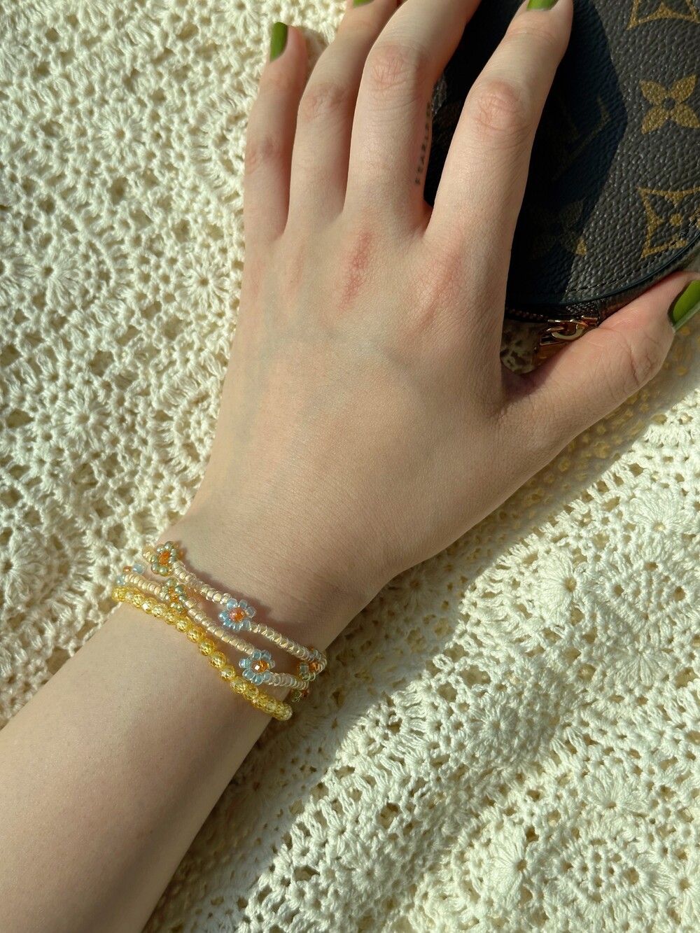 기존의 베스트셀러와 새로운 컬러들을 추가하여 업데이트 되었습니다. 미니 꽃팔찌와 일반 꽃팔찌를 함께 레이어드 하시면 더 예쁘게 연출가능하세요. 착용사진의 컬러들이 실물 컬러와 가장 비슷해요.