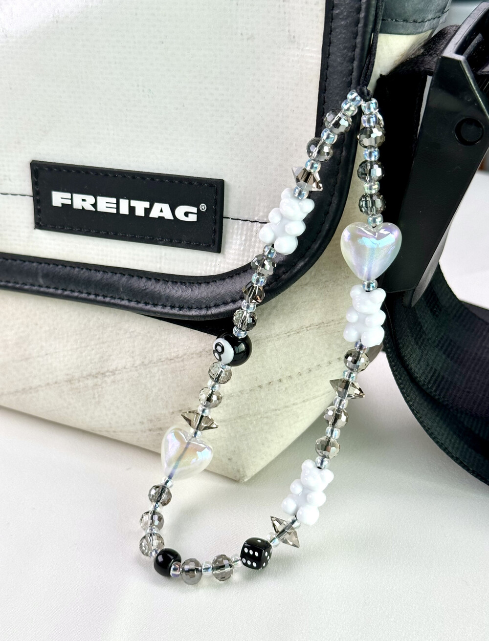 나오미 스트랩에 사용 된 크리스탈 비즈는 일반적인 유리비즈에 비해 훨씬 더 광택감이 높은 재료로 실물로 받아보시면 그 차이를 느끼실 수 있을꺼에요.