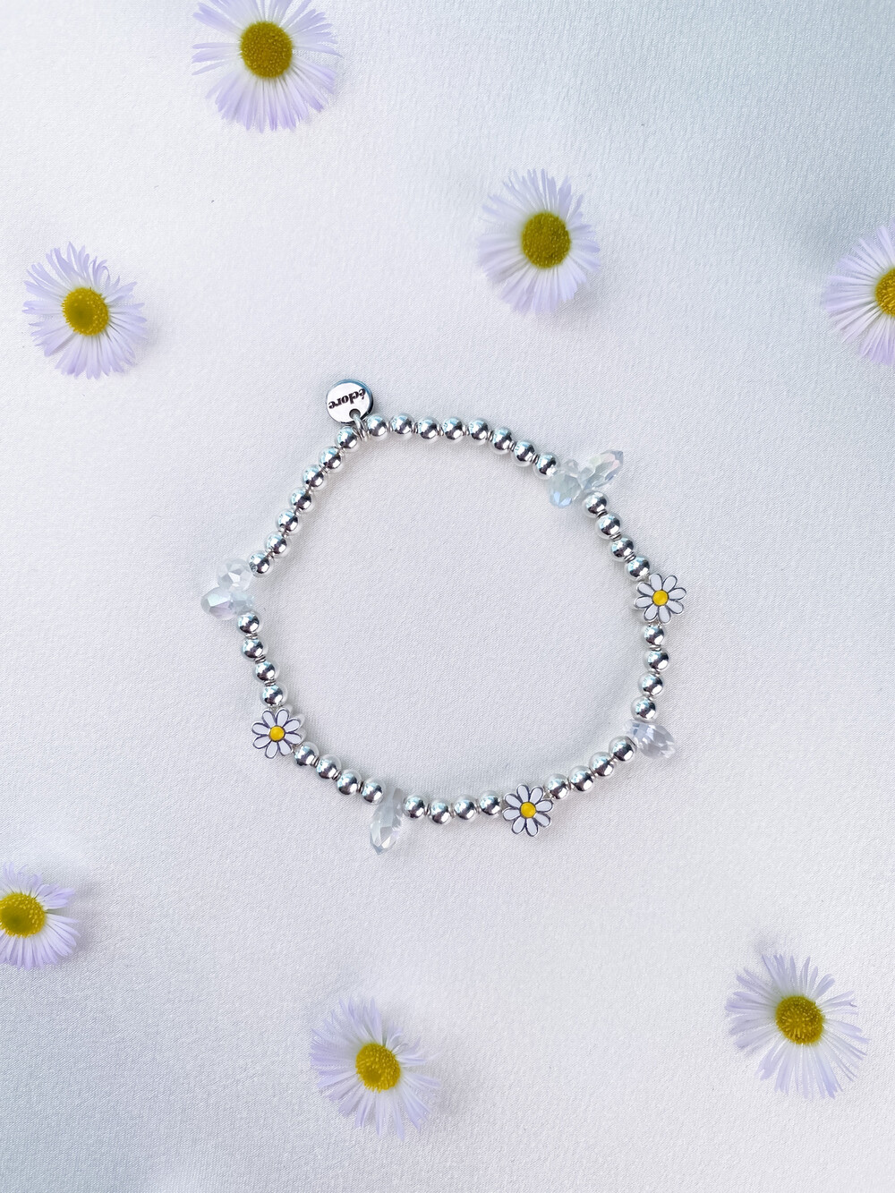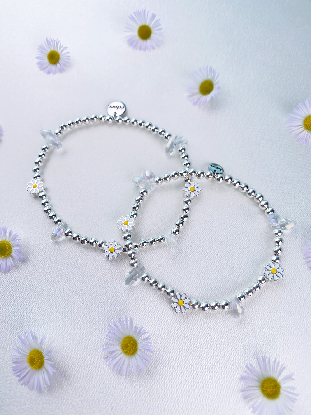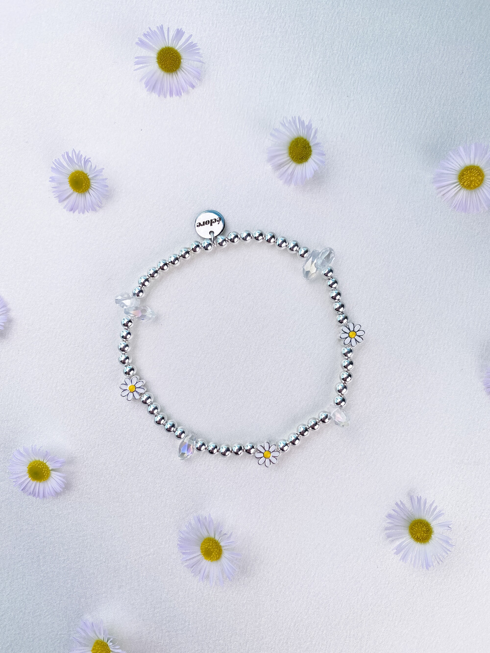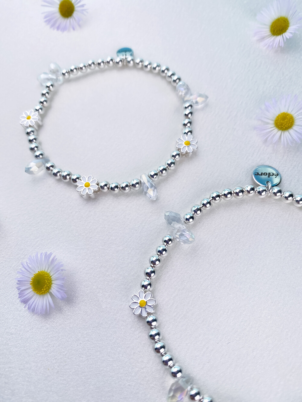 Materials: silver 925 balls & daisy, crystal beads, elastic stretch cord, stainless steel éclore logo.
