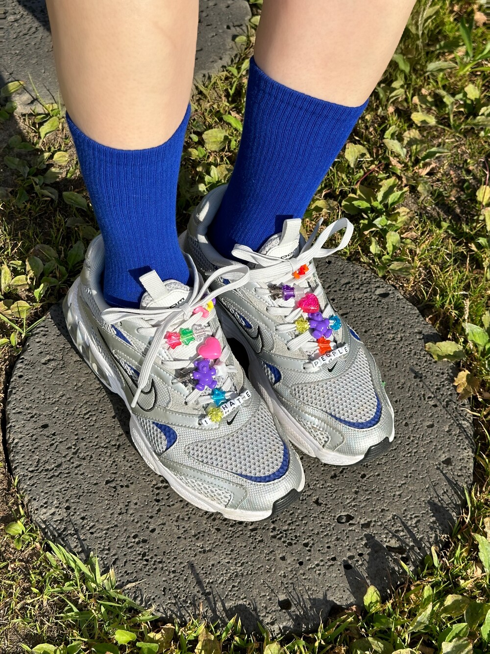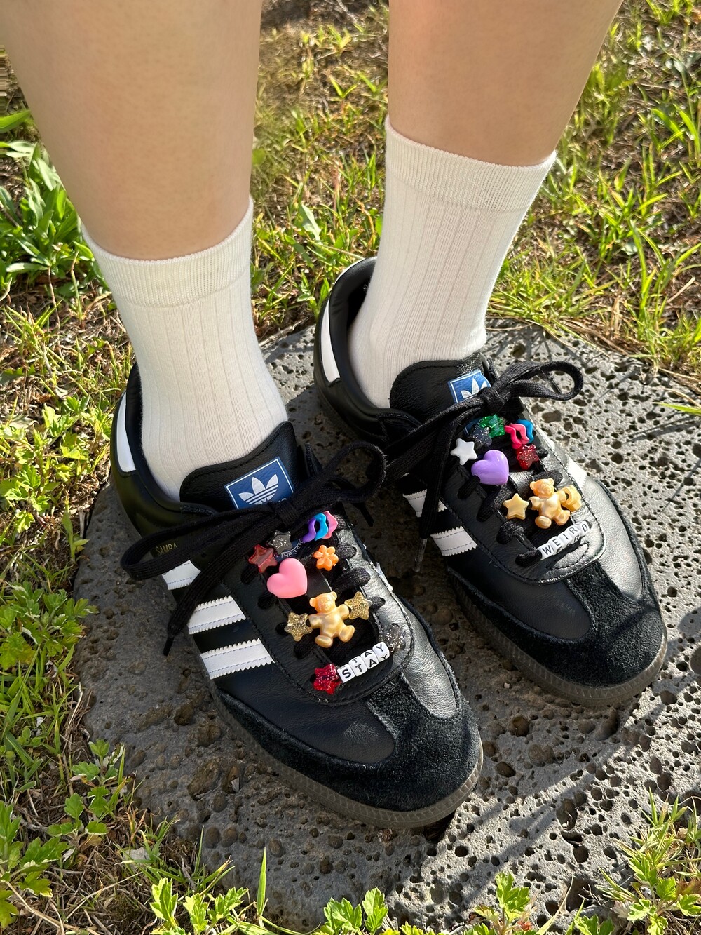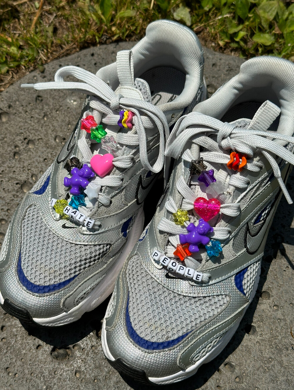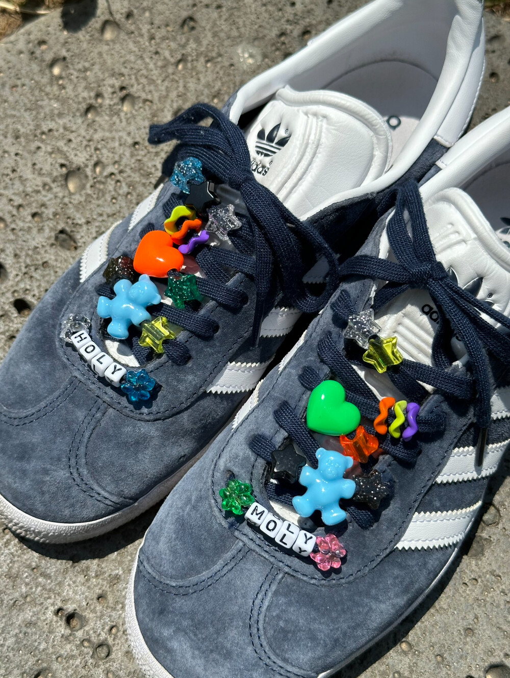 신발 끈을 풀어서 비즈와 함께 다시 꽂아주면 끝! 예시 신발 사진보다 더 많은 갯수의 비즈를 보내드리니 여유롭게 사용하시고 나머지는 또 다른 신발에 포인트로 달아주세요.