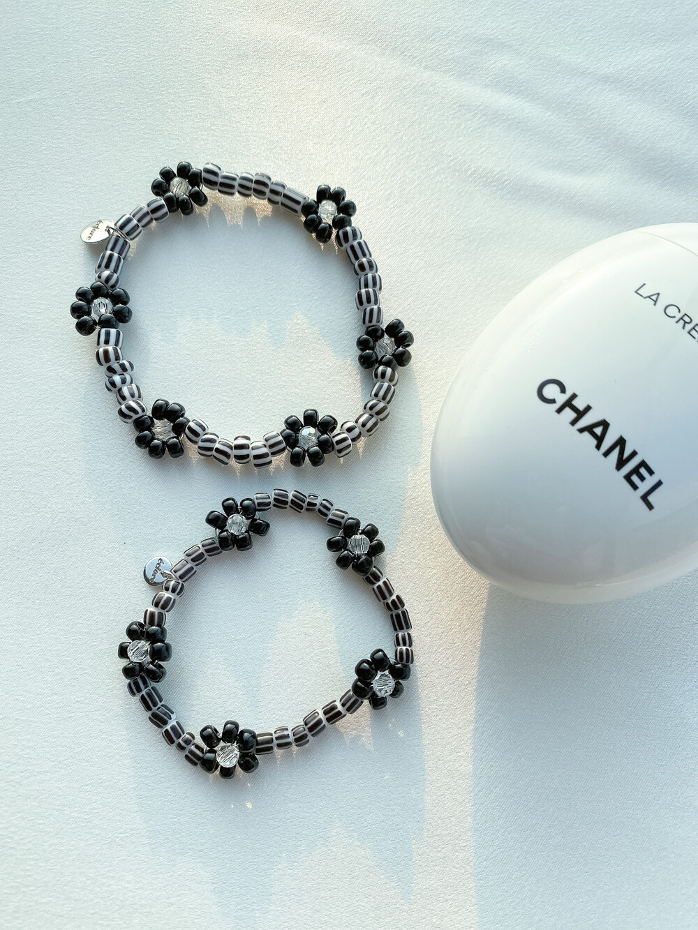 Materials: Turkish beads, miyuki beads, Jades, glass beads, stainless steel éclore logo, elastic band.
