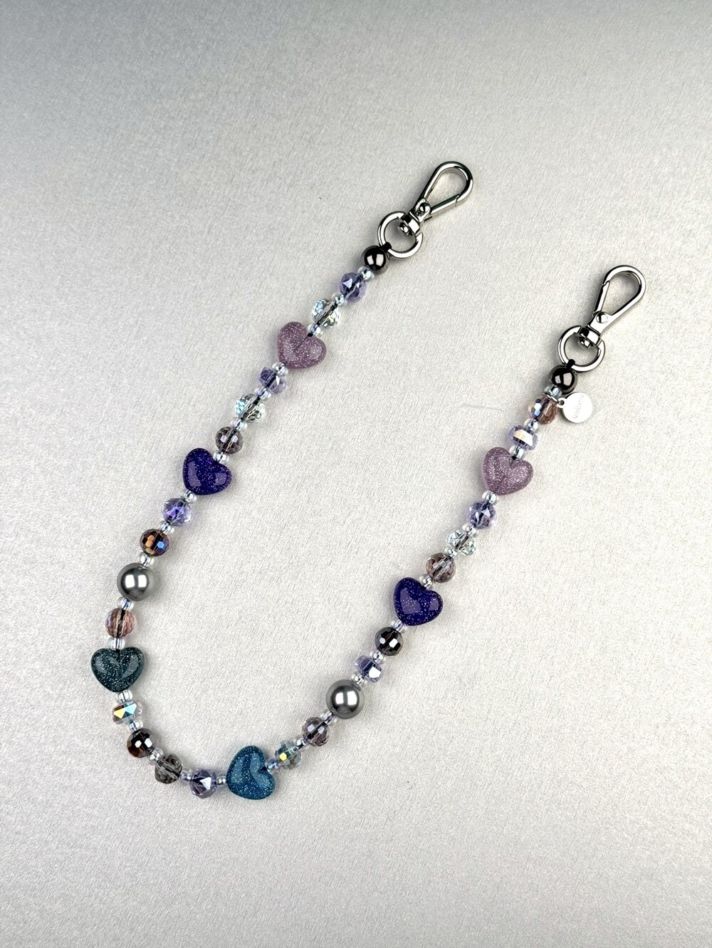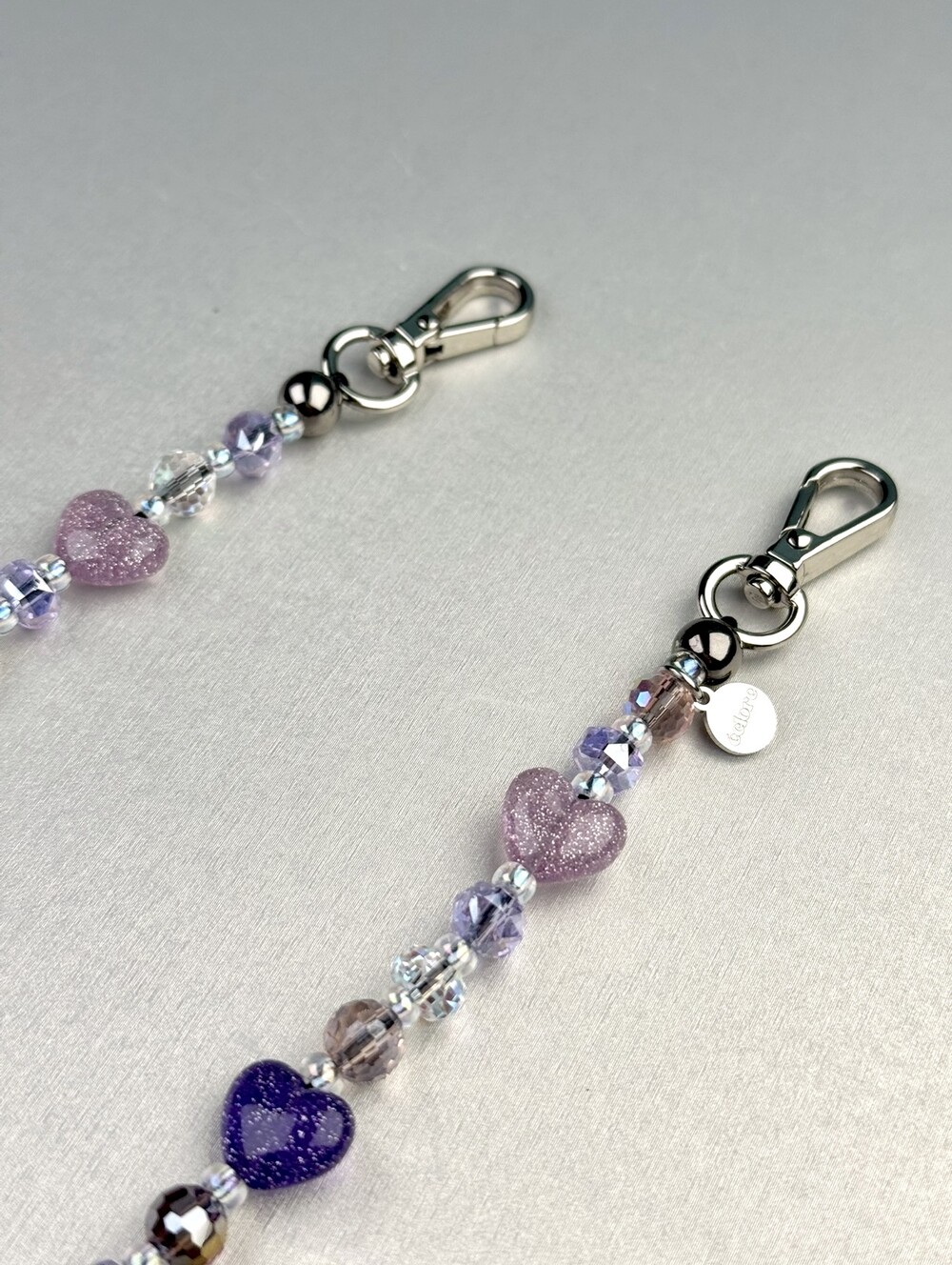 Materials: MIYUKI Beads, Resin Beadsm Crystal Beads, Stainless steel Carabiner Hook and logo